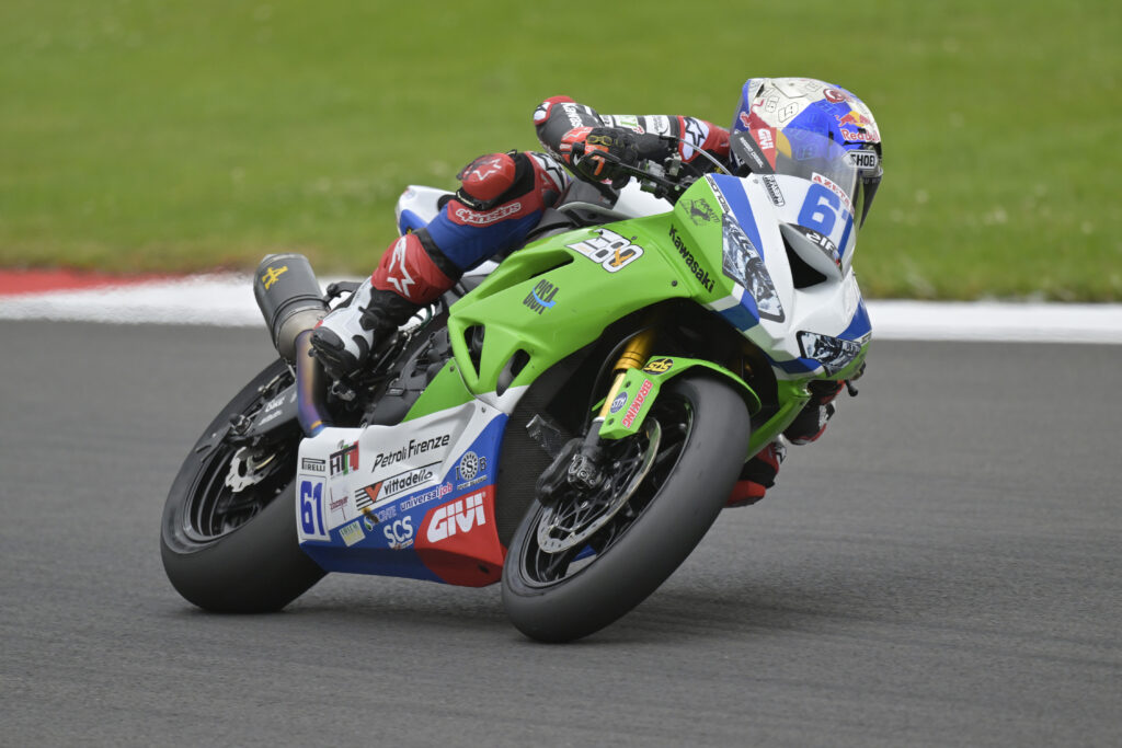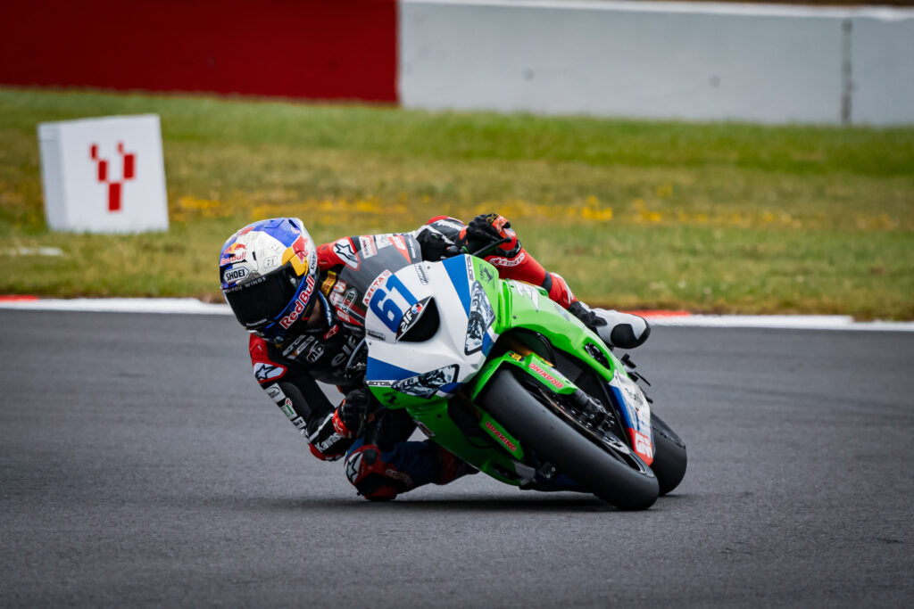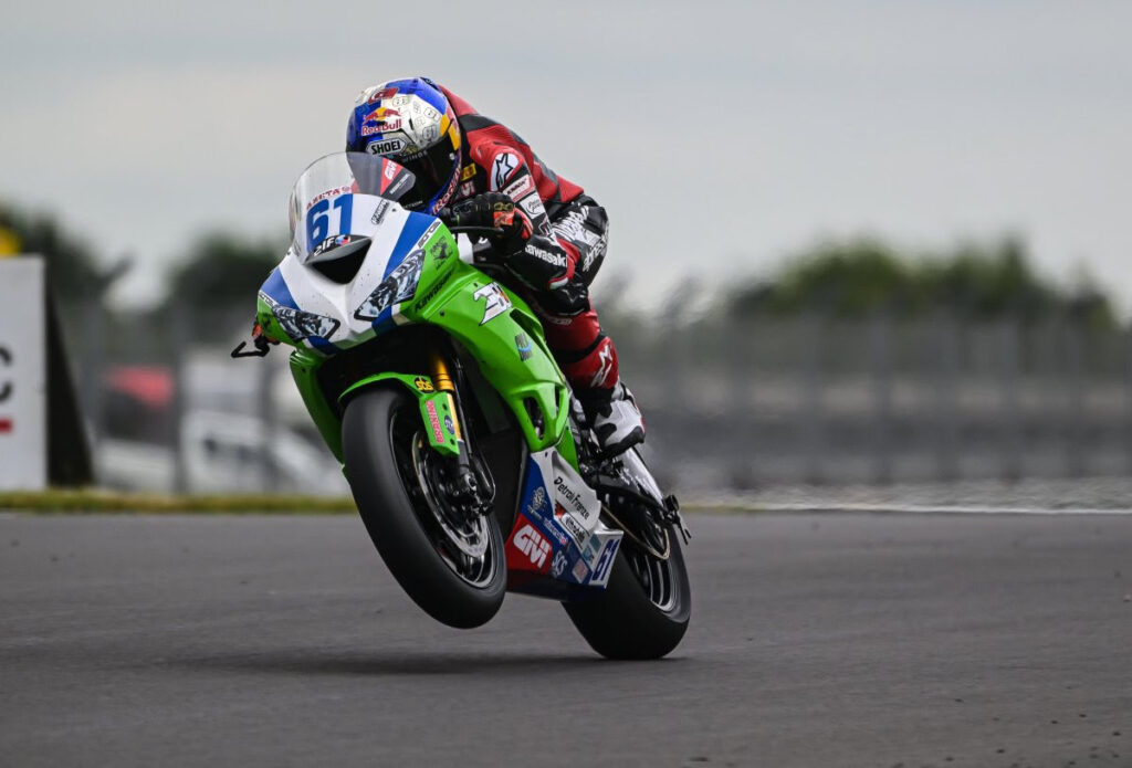 La primera carrera de la quinta ronda del campeonato WorldSSP se ha disputado hoy en Donington Park (Reino Unido). El piloto del Kawasaki Puccetti Racing Can Oncu tuvo algunas dificultades durante la sesión de entrenamientos del viernes y se clasificó decimocuarto en la Superpole. Esto significó que se alineó en la quinta fila de la parrilla para la carrera de la tarde, que se disputó en condiciones frescas y nubladas pero sobre una pista seca.